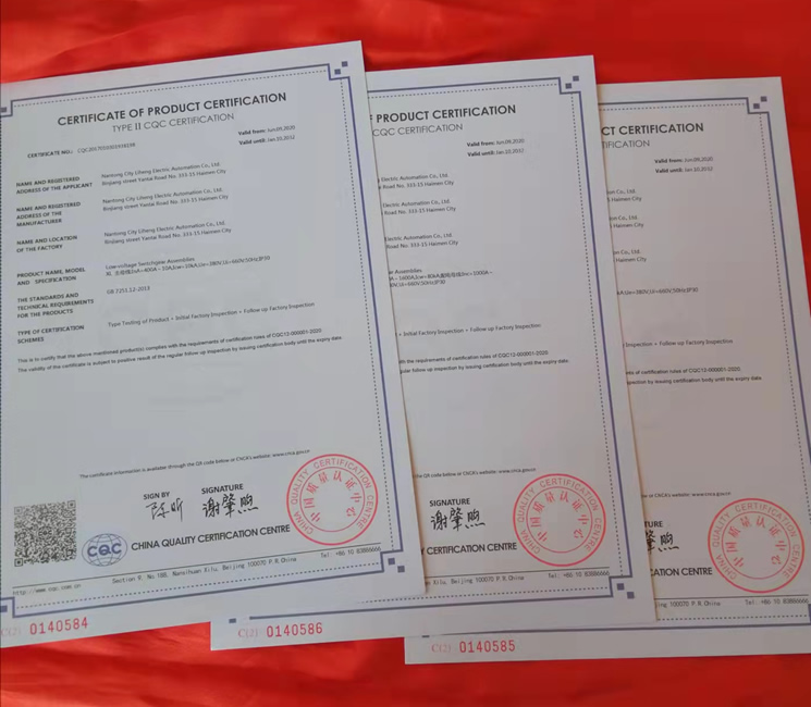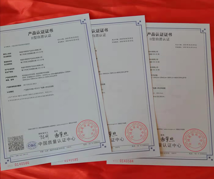 近日,我司生產(chǎn)的交流低壓配電柜、動力配電箱、低壓抽出式開關(guān)柜等低壓成套開關(guān)設(shè)備獲得國家專家組的質(zhì)量認定,上述產(chǎn)品符合CQC12-000001-2020認證規(guī)則的要求,并給我司頒發(fā)了產(chǎn)品認證證書。