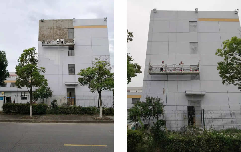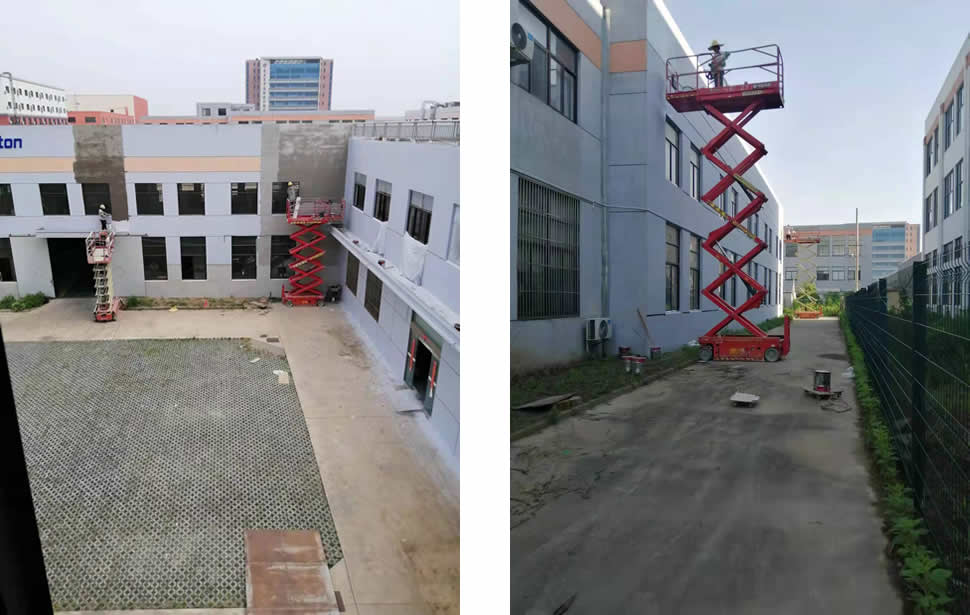 為了進一步提升公司對外形象,優(yōu)化廠容廠貌,經(jīng)公司董事會研究,自今年六月上旬起,我司決定將廠區(qū)所有外墻面進行整體防水升級改造。鏟除并清理原有外墻基面,重新上網(wǎng)格布上砂漿,批膩子,上涂料,噴真石漆,施工至今已有數(shù)周。